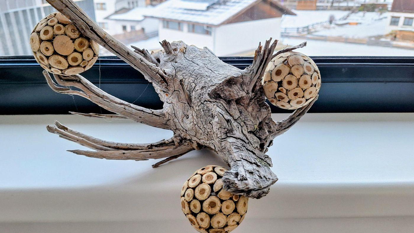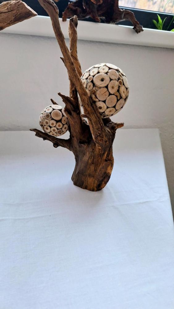 Zum Schluss befestigten die Kinder die dekorierten Kugeln an der Wurzel. Das Ergebnis kann sich sehen lassen: