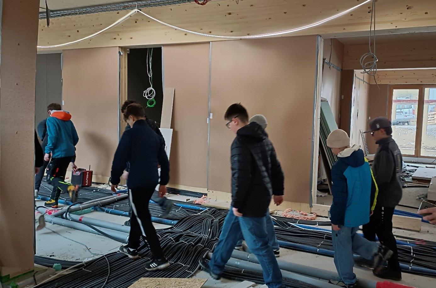 Vor Ort besichtigten wir die Baustelle des aktuellen Projekts „Haus der Kinder“. Die Schüler:innen erhielten dabei spannende Einblicke in verschiedene Arbeitsbereiche am Bau. Besonders interessant waren die Vermessungstechniken sowie der Rohbau und der Innenausbau. Zudem lernten die Schüler:innen unterschiedliche Lehrberufe kennen, die in der Baubranche erforderlich sind.